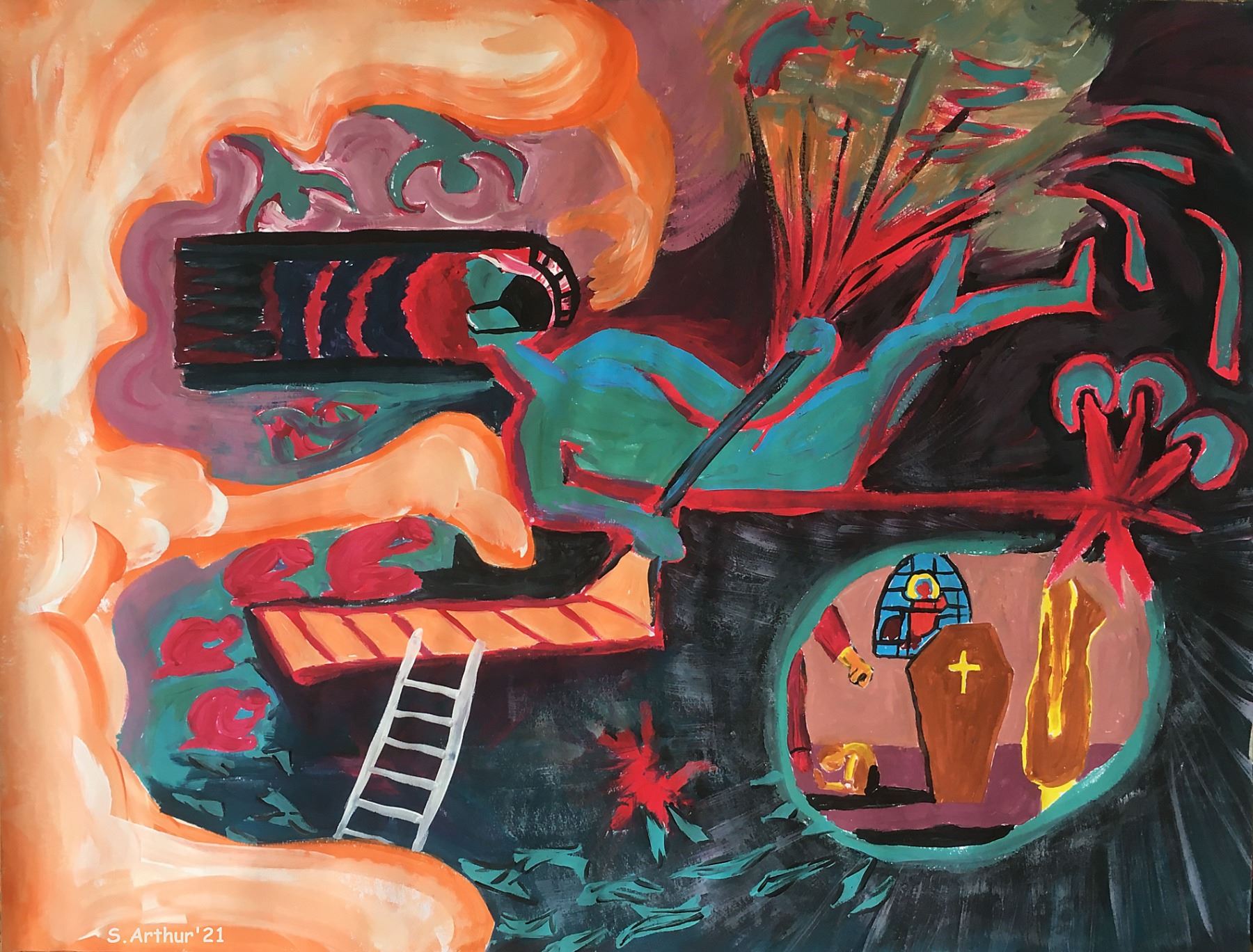 Tempera Painting - Trying to Purge Memories - dimensions approx 20' x 26" (made by Stephen Arthur)