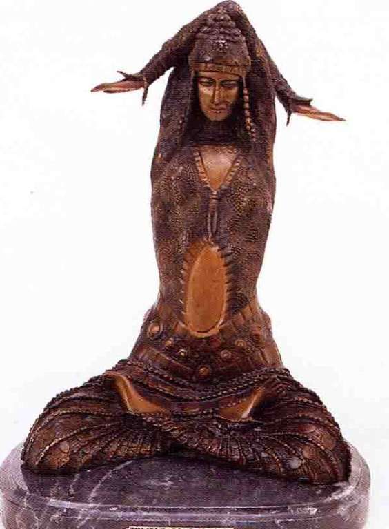 "Temple Of Godness" Bronze Sculpture - After Chiparus - Beautiful Color Patina - Mounted On A Fine Italian Marble Base - Beautifully Detailed - Signed - Mint Condition - 22"H X 12"W - Lost Wax Cast Bronze