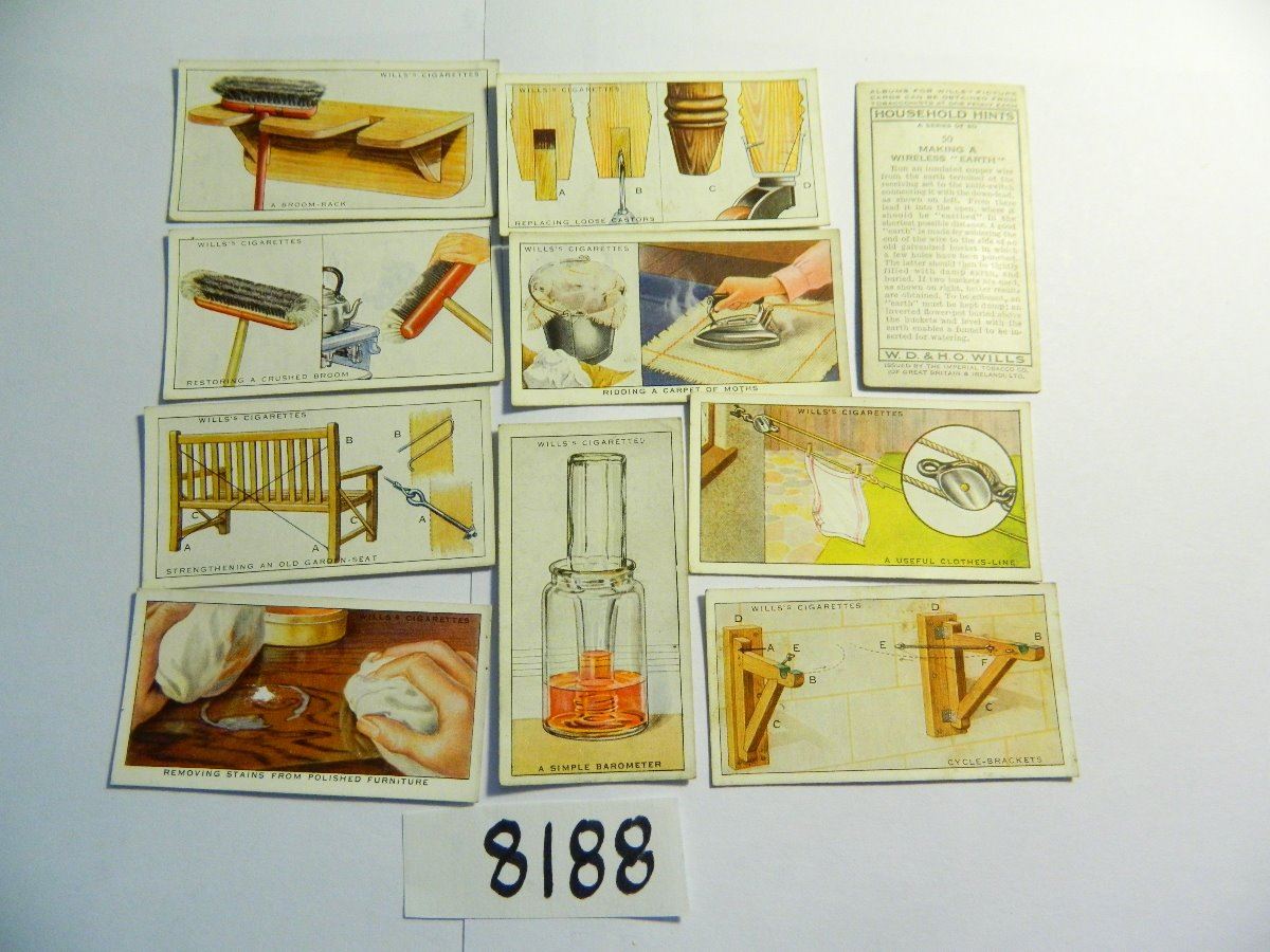 Ten (10) 1936 Wills's Cigarette Cards Household Hints, All One Money, Tobacco Cards from 1930s