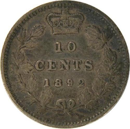 Canada Ten Cents 1892 Small 9 Obverse 6, VF. Medium mauve-gray toning