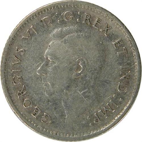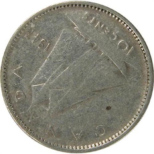 Ten Cents 1947 Maple Leaf Rotated 135o. A counter-clockwise rotation, Fine