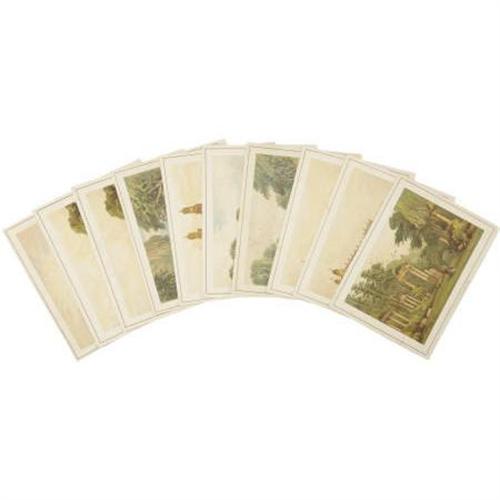 <B>Ten Color Prints by Marcus Ward & Company featuring Significant Places in England.</B></I> Ten 8"x 6" cards with colorful prints mounted, ruled and labeled on the front of each. Some very minor rubbing and curling to the edges. Altogether very good prints. <BR><BR>Marcus Ward & Company published these ten plates which feature: the <I>Ruins at Windsor Park</B></I>, two prints of <I>St. George's Chapel</B></I>, <I>Long Walk, Windsor Park</B></I>, <I>Hampton Court Palace</B></I>, <I> Quadrangle of Eton College</B></I>, <I>Cascade at Virginia Water</B></I>, two prints of <I>Eton College</B></I>, and <I>View from Richmond Hill</B></I>.<BR><BR><b>Shipping:</b> Books & Catalogs (<a target="_blank" href="http://www.heritageauctions.com/common/shipping.php">view shipping information</a>)