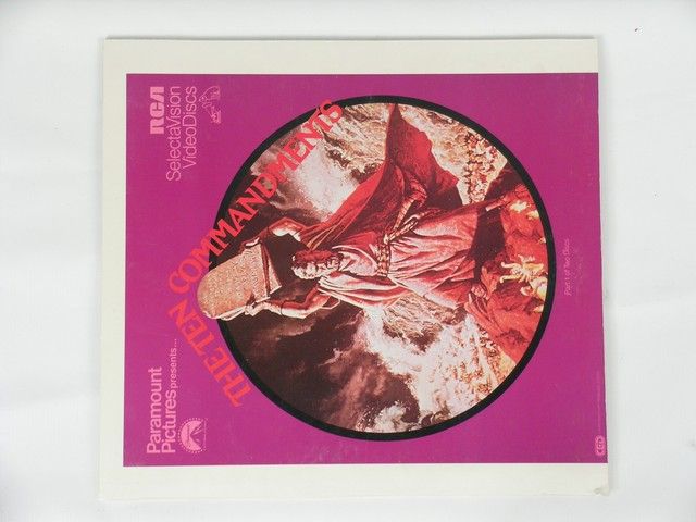 From DeMille's epic "The Ten Commandments" (1956) a rare Video Disk cover mounted on white foam core board. Approx 14" x 13".