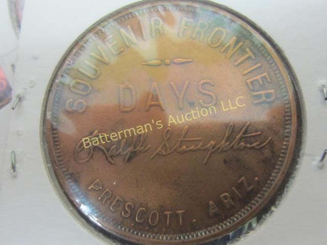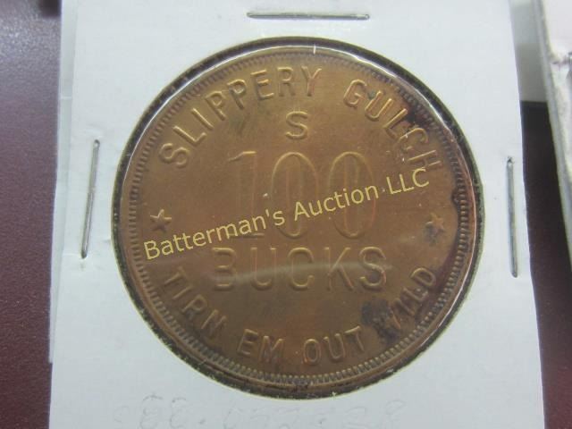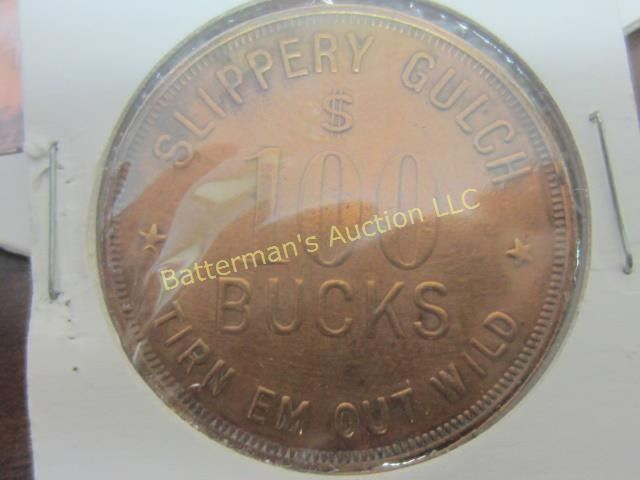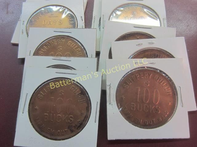 Ten Souvenir Frontier Days, Prescott Arizona, Slippery Gulch $100 Bucks Tokens beleive to be bronze