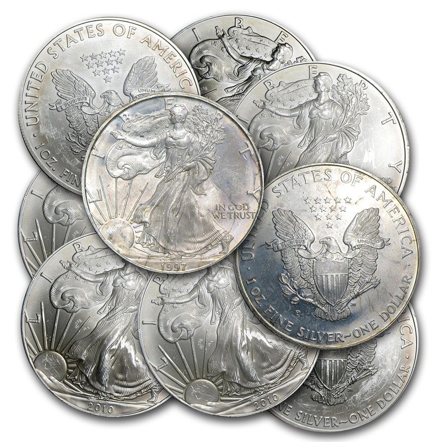 Ten Mixed Dates 1 oz Silver American Eagles (Brilliant Uncirculated)