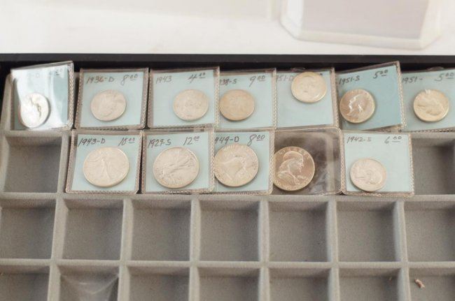 151S, 1951, five and Walking Liberty halves 1943D, 1929S, 1949, 1945S, 1962 Franklin halves