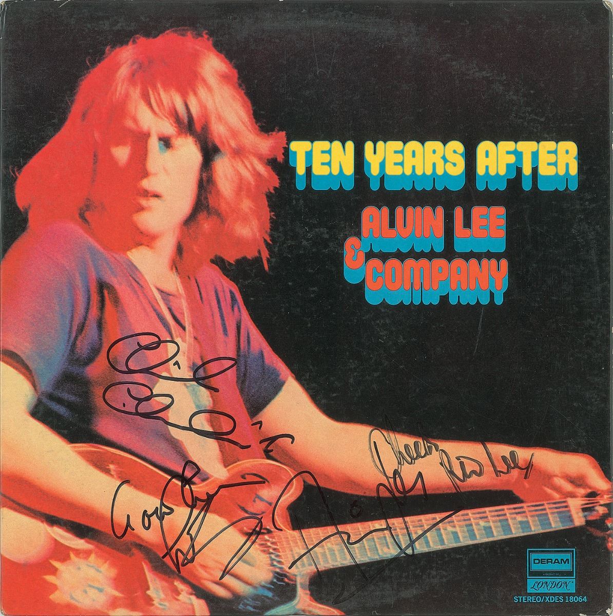 Alvin Lee and Company album signed on the front cover in black felt tip by Alvin and Ric Lee, Chick Churchill, and Leo Lyons. In fine condition. The record is included.