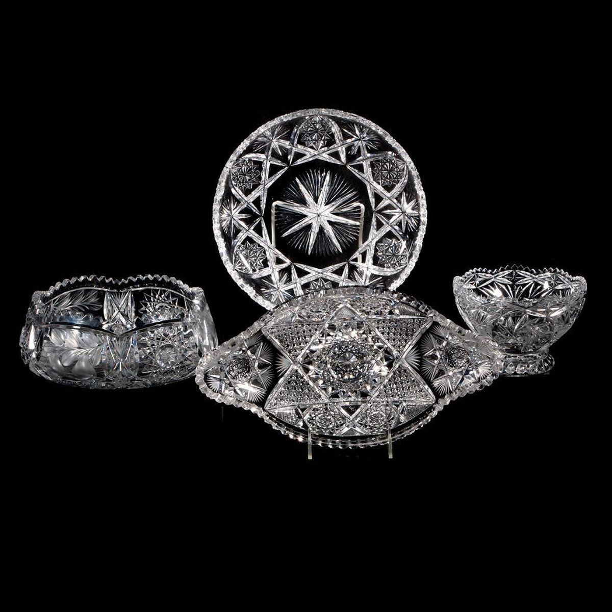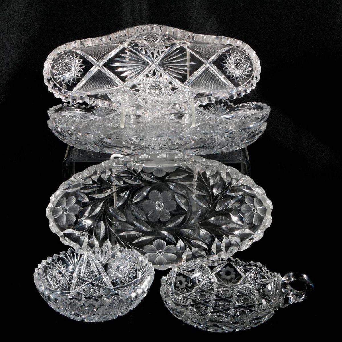 Ten pieces of late 19th / early 20th century cut crystal, the largest bowl measuring 9 inches in diameter.