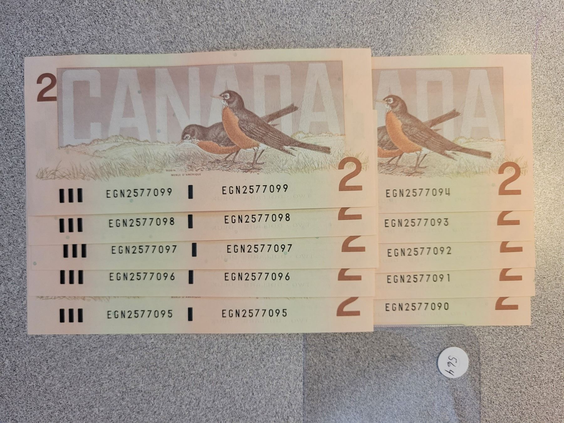 Ten uncirculated consecutive 1986 $2.00 Two dollar bills EGN 2577090-7099