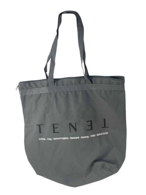 Original bag given to select crew on the production of the Christopher Nolan directed science fiction action thriller film 'Tenet' (2020), which follows a former CIA agent who is recruited into a secret organization, tasked with tracing the origin of objects that are traveling backward through time and their connection to an attack from the future to the present.