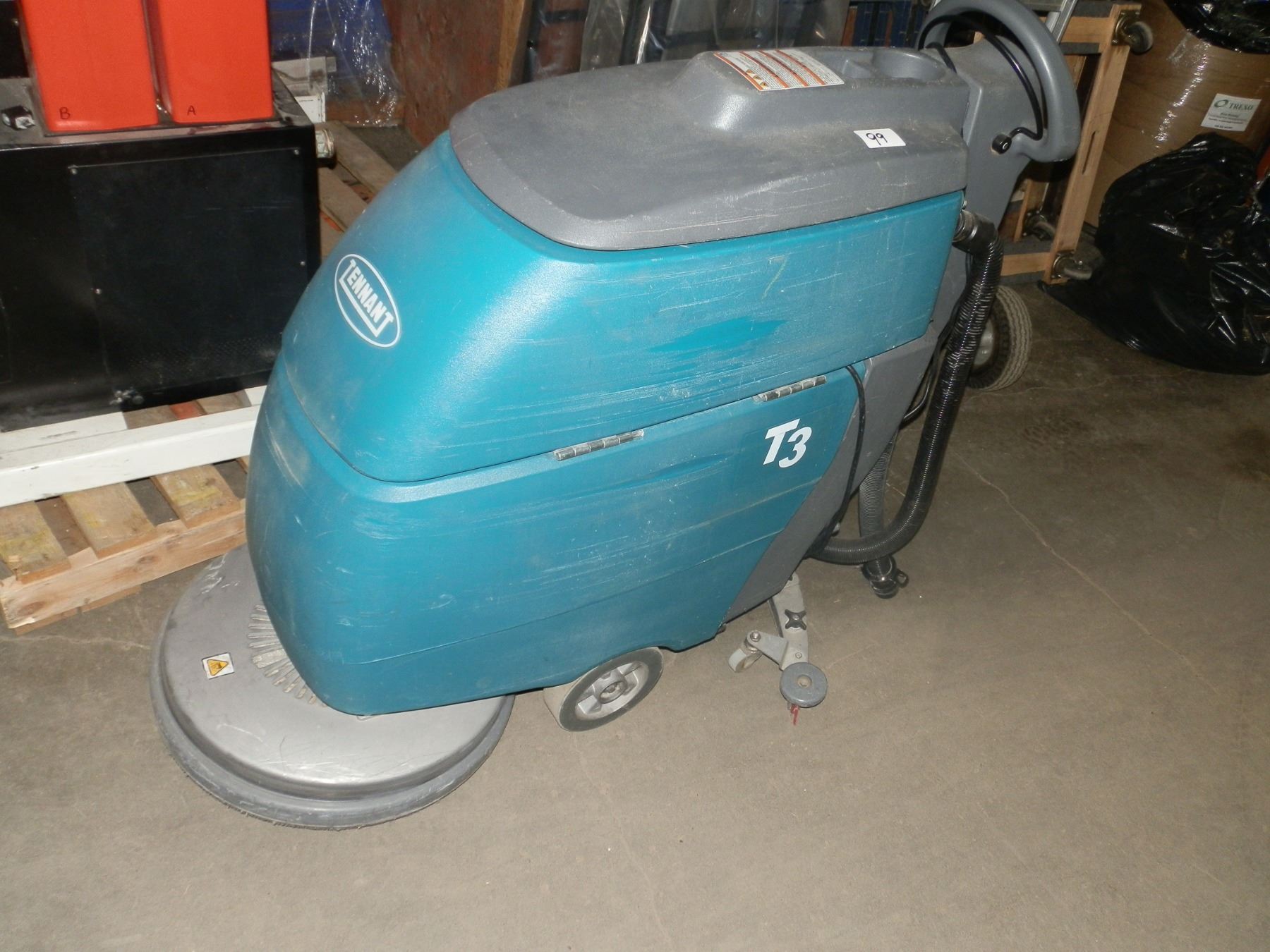 Tennant T3 Floor Scrubbing Machine, this machine has a built in charger, in good working condition....used