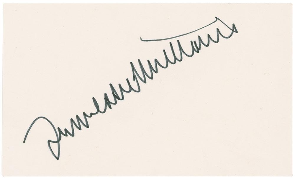 Felt tip signature, “Tennessee Williams,” on an off-white 5 x 3 card. In very fine condition.