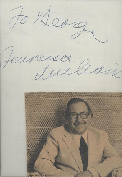 Thomas Lanier "Tennessee" Williams was an American playwright, author of many stage classics.After years of obscurity, he became suddenly famous with The Glass Menagerie (1944), closely reflecting his own unhappy family background. This heralded a string of successes, including A Streetcar Named Desire, Cat on a Hot Tin Roof, Orpheus Descending, and Sweet Bird of Youth. Original ink signature inscribed to George, on page with newspaper affixed.