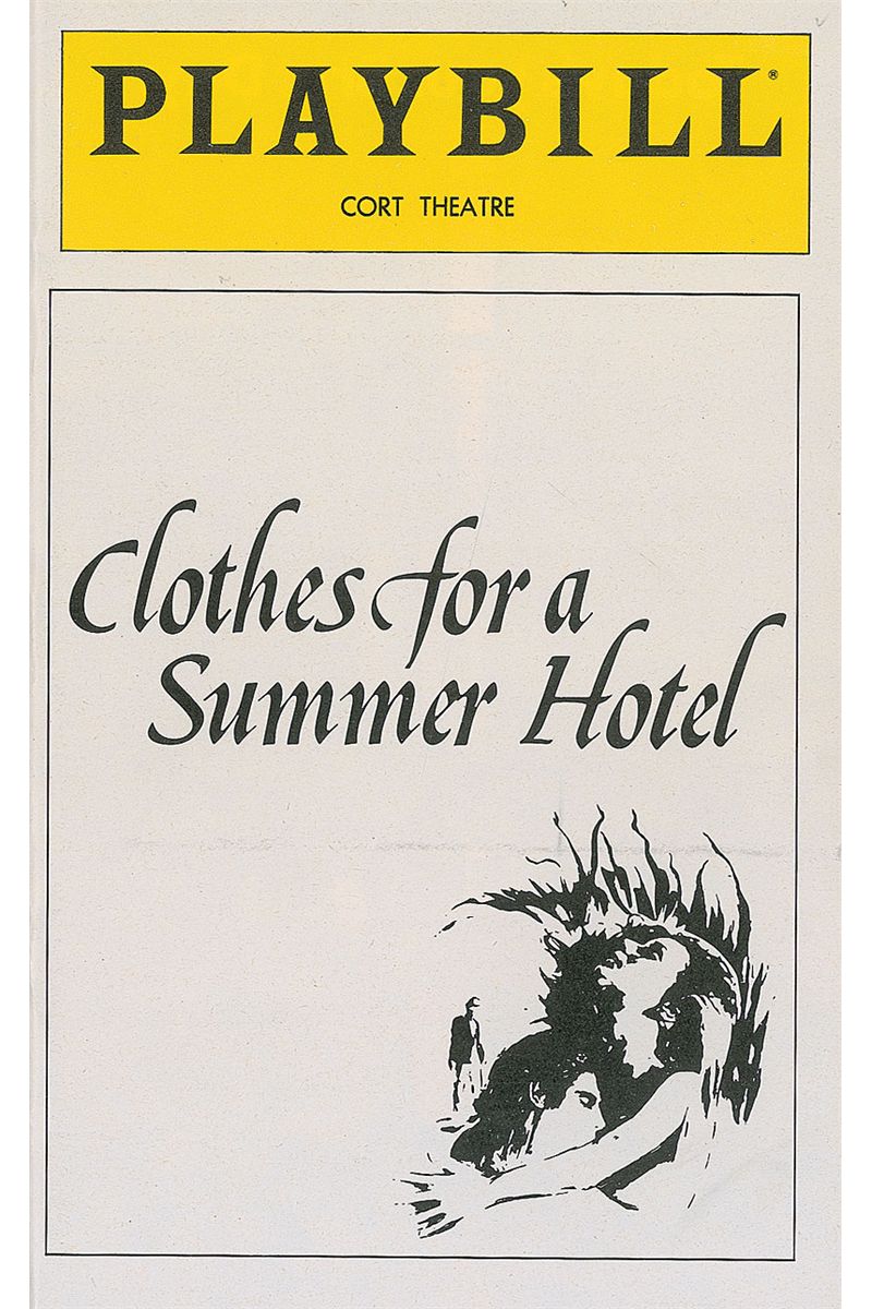 Playbill for the opening performance of Clothes for a Summer Hotel at Cort Theatre, March 25, 1980, 66 pages, 5.5 x 9, signed on the cast listing page in black felt tip by Tennessee Williams and Geraldine Page. In fine condition.