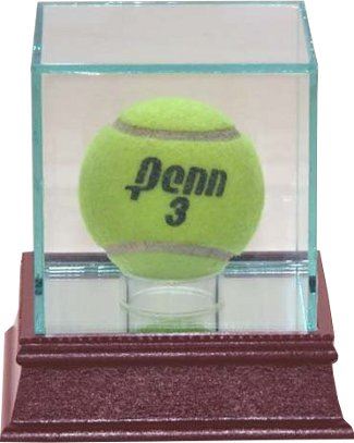 Tennis Glass 1-Ball Display Case. "Each UV-protected display case is hand-made and includes a removable glass top for easy access. With a mirrored bottom and stunning cherry wood base, your memorabilia will look stylish and protected in any setting.This single tennis ball display case measures in overall size of: 4.75 inches in length, with a width of 4.75 inches and a height of 5.25 inches. Within the case, there is 3.75 inches in length, width and height available." Tennis Balls sold separately.