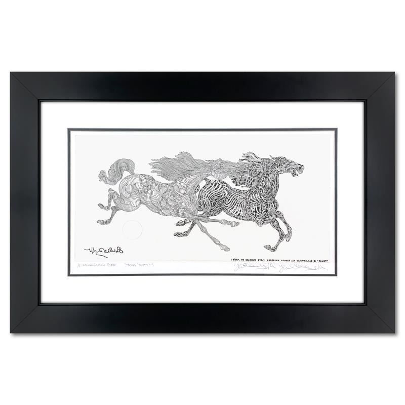 "Tenue" is a one-of-a-kind cancellation proof with its corresponding copper plate by Guillaume Azoulay. The etching is numbered 1/1 and hand signed by the artist. Includes Letter of Authenticity. Each piece measures approx. 36" x 24.5" (frame), 24" x 14"