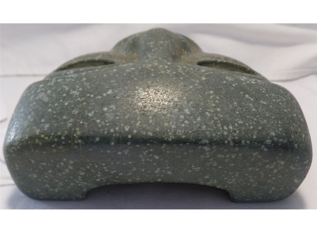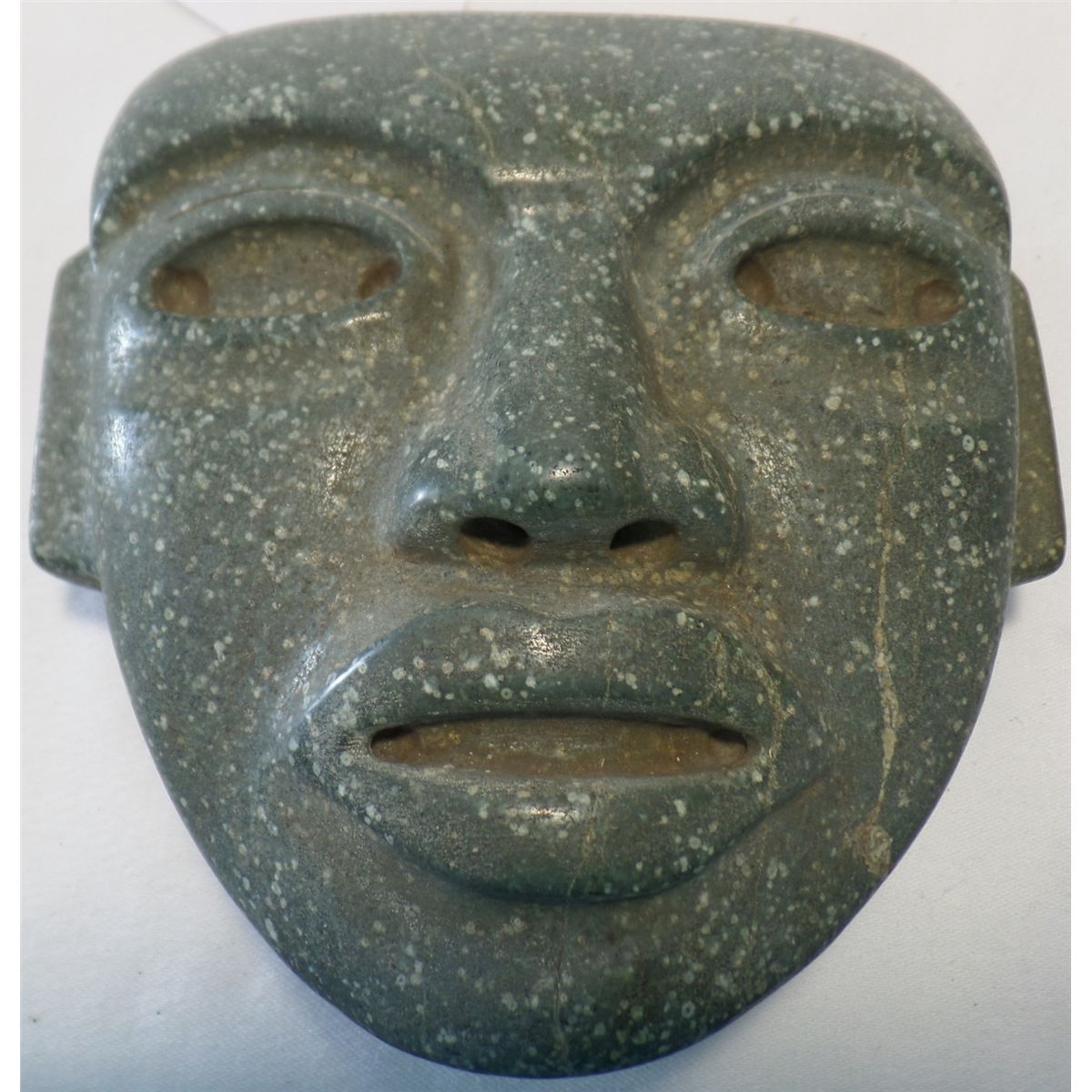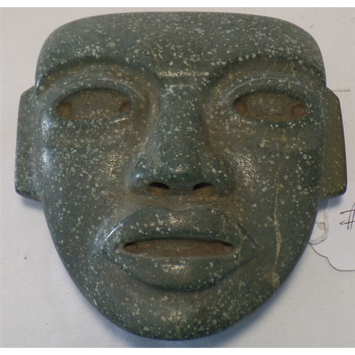 Teo Mask. Mask weighs approx. 4.5 lbs and measures 6" x 5.5" x 2". Condition: Missing 2 eyelets on rear of mask w/ancient crack on front. Shipping $24.