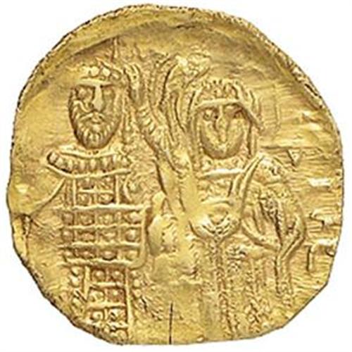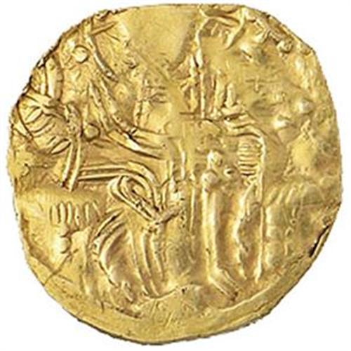 Monete Bizantine. Teodoro II di Nicaea (1254-1258). AU hyperpyron. D/ Cristo seduto in trono di fronte. R/ Teodoro stante di fronte al fianco della Vergine, che lo incorona. D.O. IV, pl. XXXV, 1-4. gr. 2.68 AU. qBB/BB.
