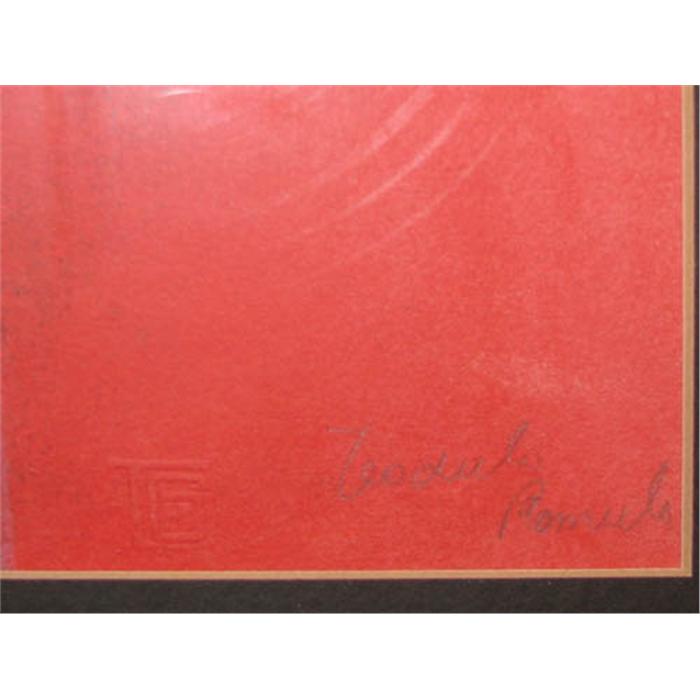 Signature:  Signed Teodulo Romulo lower right and numbered 95/110 with chop mark