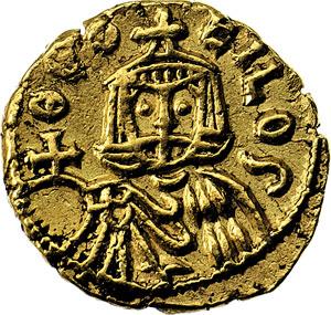Impero Bizantino. Teofilo (829-842). Solido, Siracusa. D/ ΘEOFILOS. Busto di fronte con corta barba, che indossa corona e loros e tiene croce potenziata. R/ ΘEOFILOS. Busto di fronte corta barba, che indossa corona e clamide e tiene globo crucigero. D.O.24. Sear 1670. AU. g. 3.88 mm. 15.50 Bel BB+.