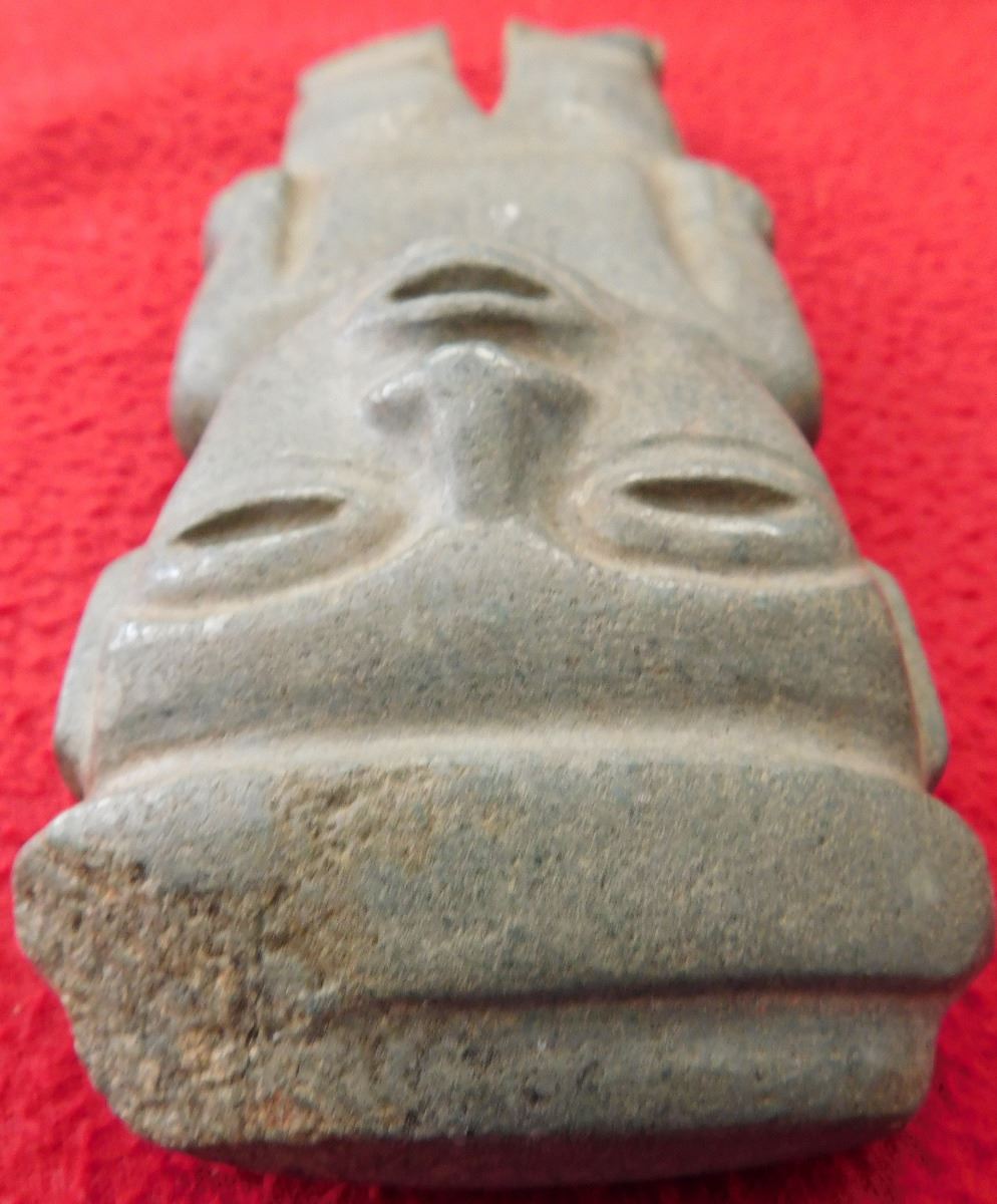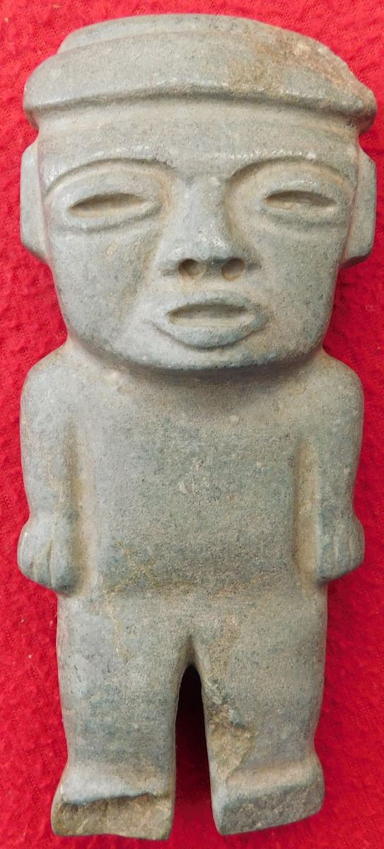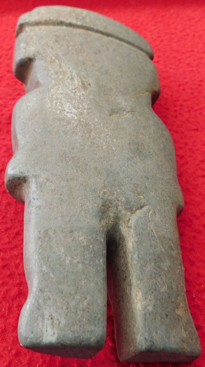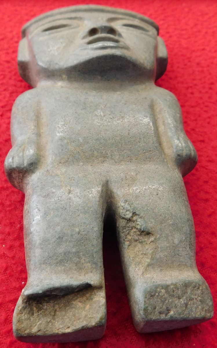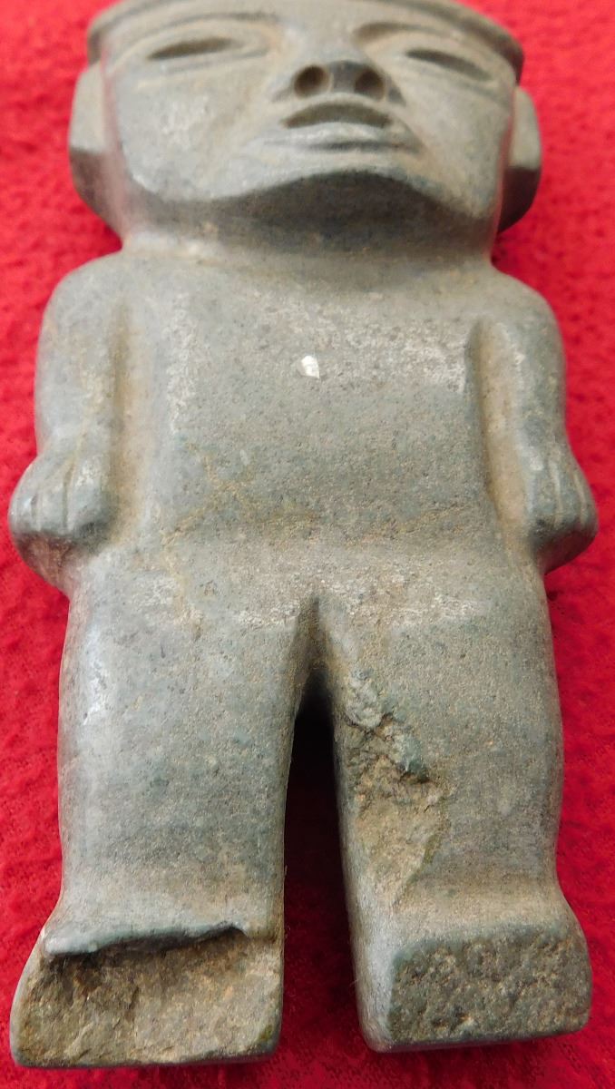 Teotihuacan Stone Figure, circa 1600 years old. Made of fine grain basalt, this pre-columbian figure measures 5.75" x 2.5" x 1". Teo, Mexico City, Mexico. From an old, 1960s California collection. Condition: Chips off of feet and leg, nice ancient polish remaining, see images. Shipping: $25.50 w/insurance and signature.
