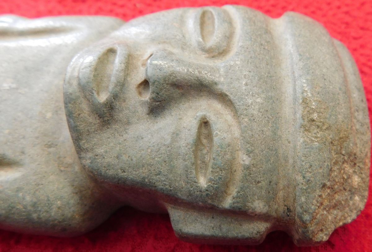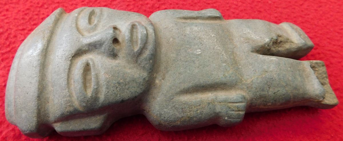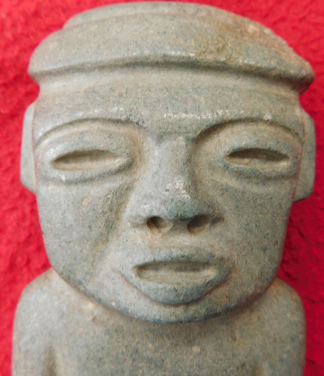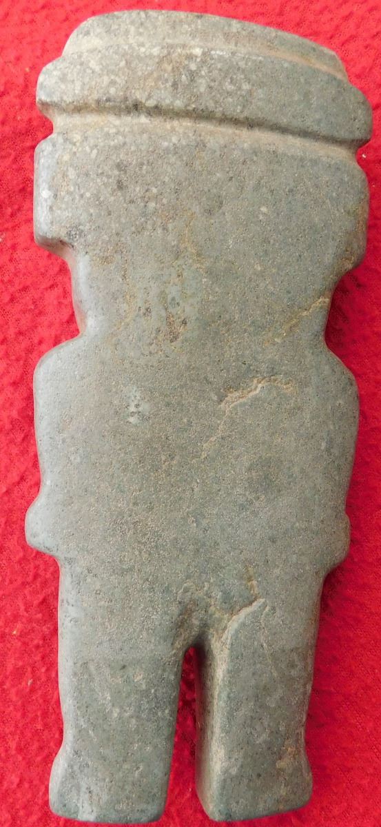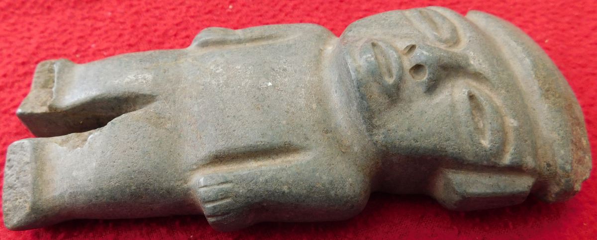 Teotihuacan Stone Figure, circa 1600 years old. Made of fine grain basalt, this pre-columbian figure measures 5.75" x 2.5" x 1". Teo, Mexico City, Mexico. From an old, 1960s California collection. Condition: Chips off of feet and leg, nice ancient polish remaining, see images. Shipping: $25.50 w/insurance and signature.