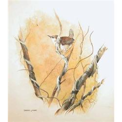 Terence Lambert watercolour, Wren perched upon a branch, signed, 11.5 x 10 ins. £300-400