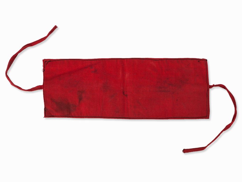 The armband is in good condition with traces of wear. The golden inscription is largely abraded. The dimensions are 10 x 28 cm.