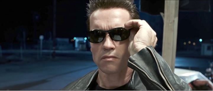 The Terminator's (Arnold Schwarzenegger) sunglasses from James Cameron's iconic sci-fi action sequel Terminator 2: Judgment Day. In this sequel set eleven years after "The Terminator," young John Connor (Edward Furlong), the key to civilization's victory over a future robot uprising, is the target of the shape-shifting T-1000 (Robert Patrick), a Terminator sent from the future to kill him. Another Terminator, the revamped T-800 (Arnold Schwarzenegger), has been sent back to protect the boy.