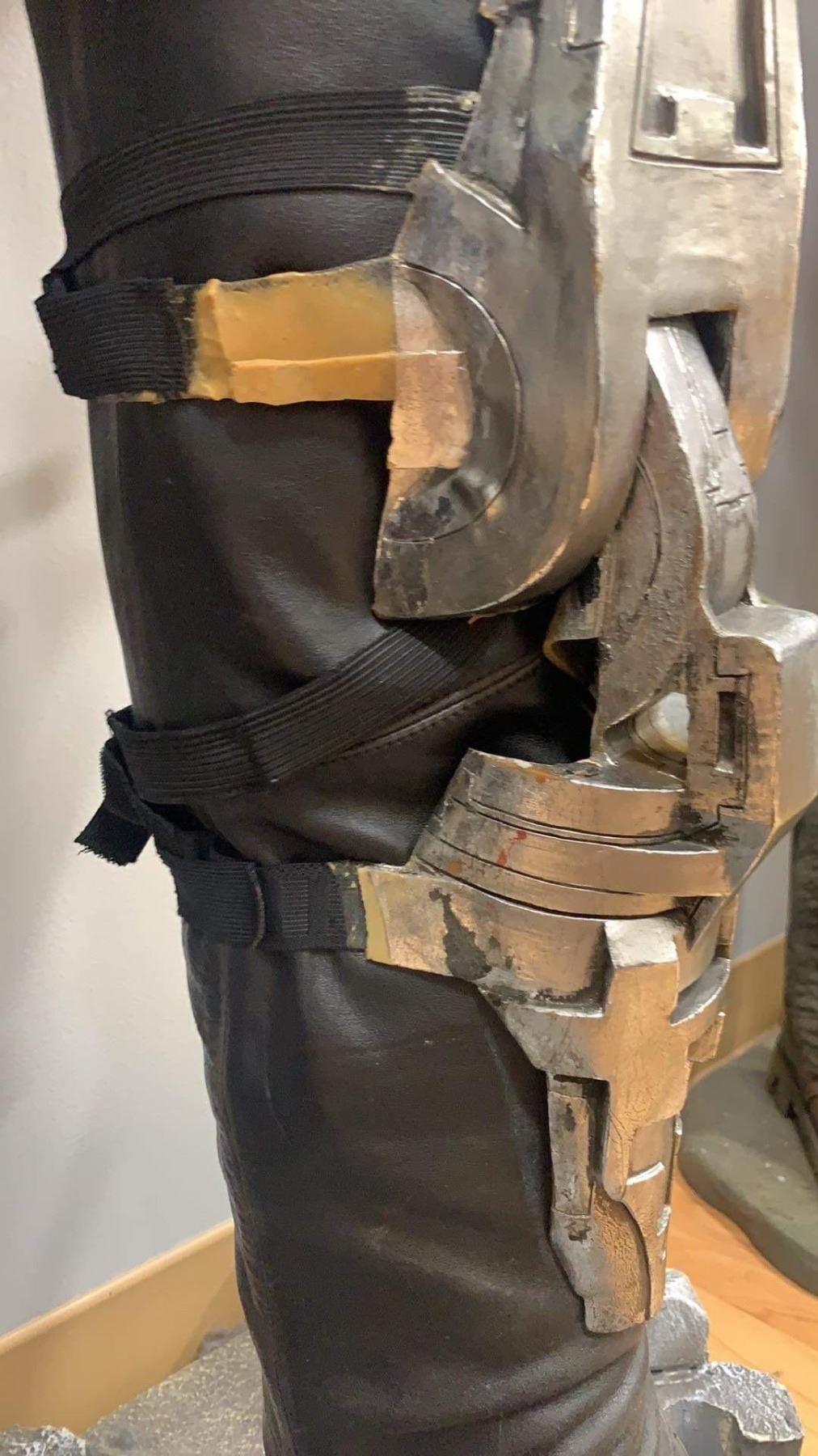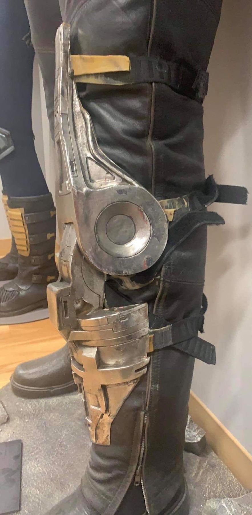 Original stunt knee worn by "The Terminator", played by Arnold Schwarzenegger in the science fiction action film "Terminator 2: Judgment Day" (1991), where, a cyborg, identical to the one who failed to kill Sarah Connor, must now protect her teenage son, John Connor, from a more advanced and powerful cyborg.