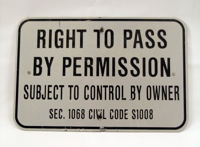 A screen used "Right To Pass By Permission" metal sign from "Terminator 2: Judgment Day (1991). (Approx. 18" x 12").