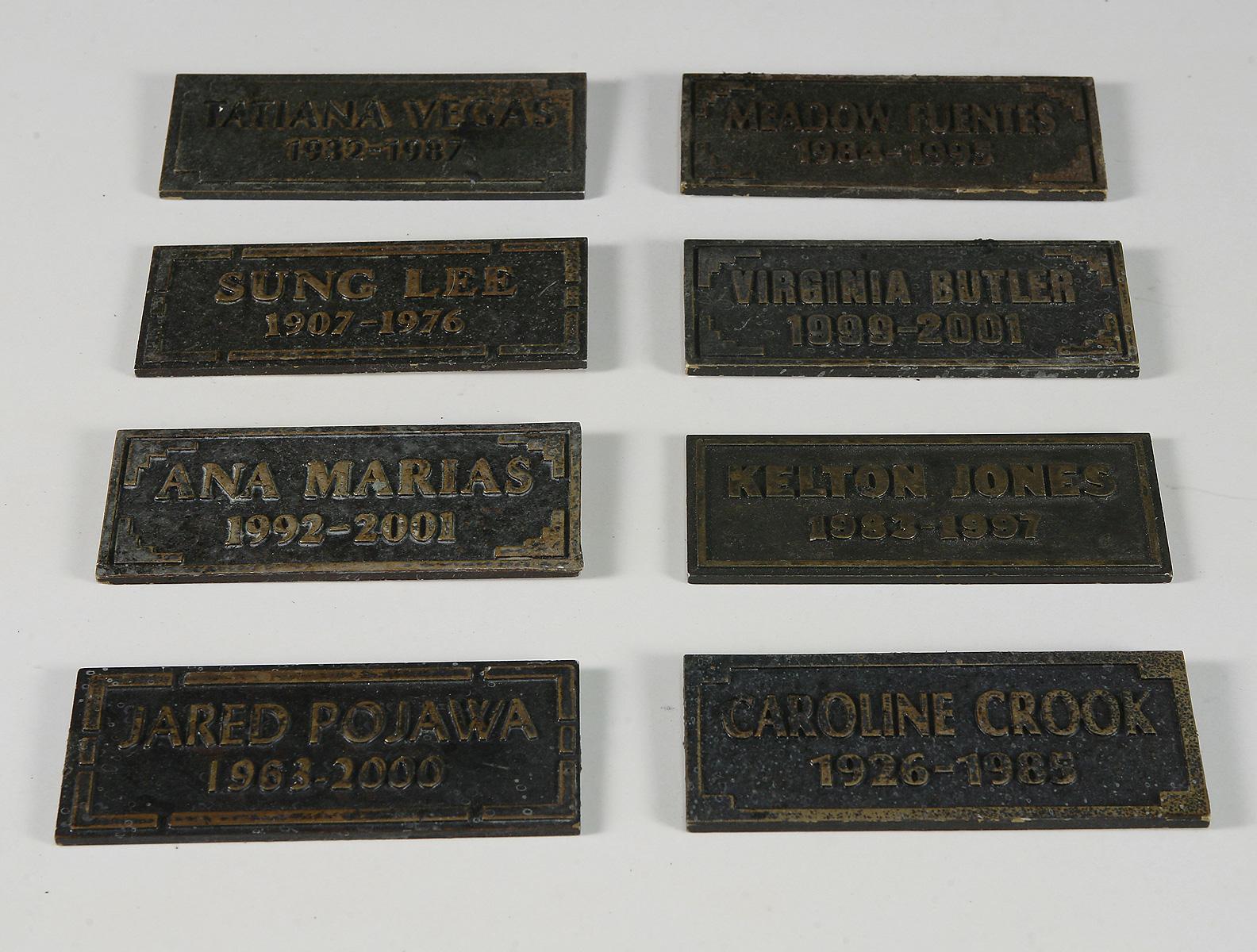 Screen Used Grave Marker set of 8 From Sarah Conner's Crypt for the 2003 Blockbuster Smash "Terminator 3" Dimensions: 2"x4.625"x0.125"