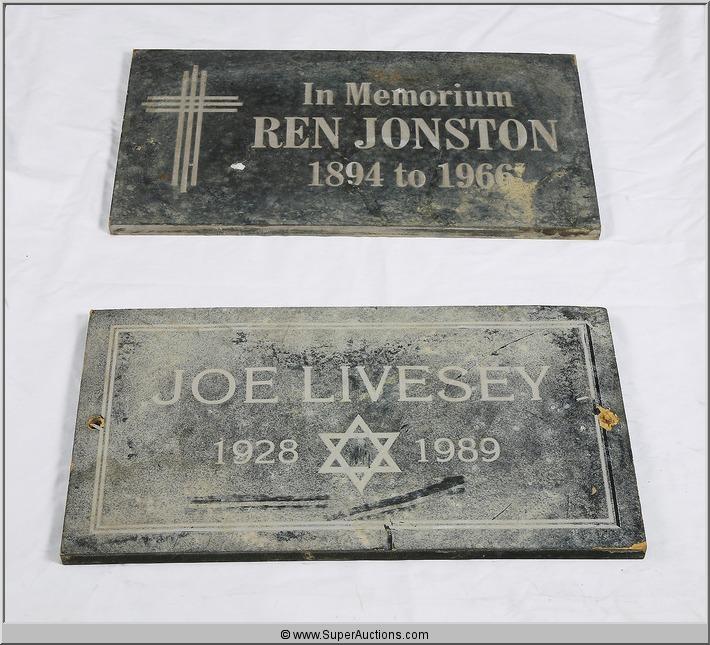 Screen Used Grave Stone set of 2 From Sarah Conner's Crypt for the 2003 Blockbuster Smash "Terminator 3" #2010536 Dimensions: 12"x22"x0.75"