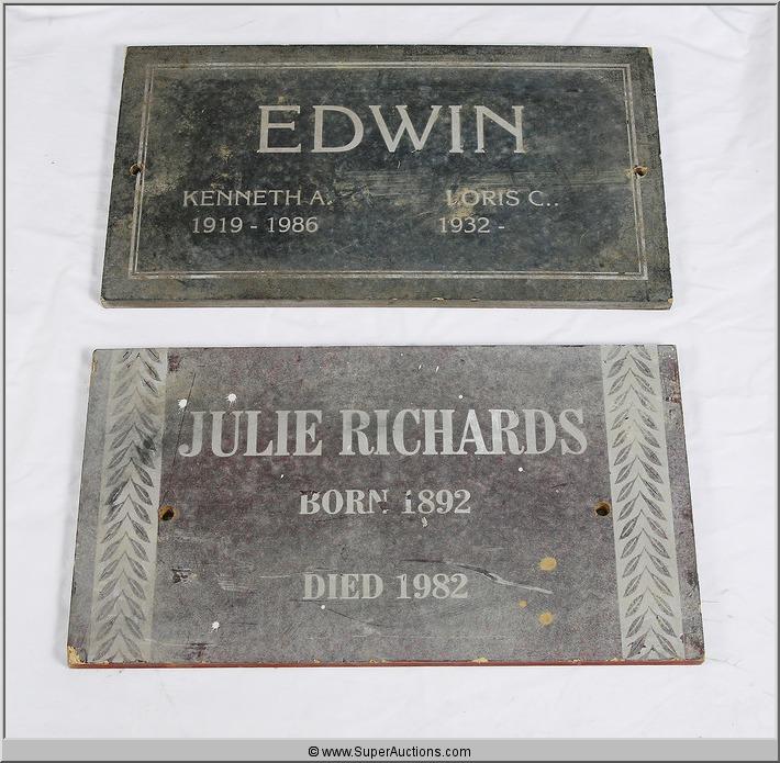 Screen Used Grave Stone set of 2 From Sarah Conner's Crypt for the 2003 Blockbuster Smash "Terminator 3" #2010536 Dimensions: 12"x22"x0.75"
