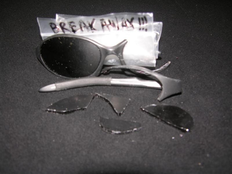 Terminator 3: Rise of the Machines (2003) - Breakaway Sunglasses worn by Arnold Schwarzenegger in the finale of the film where he fights the female terminator. In 6 pieces, in a plastic bag labeled “Breakaway!!!” (6" x 3")