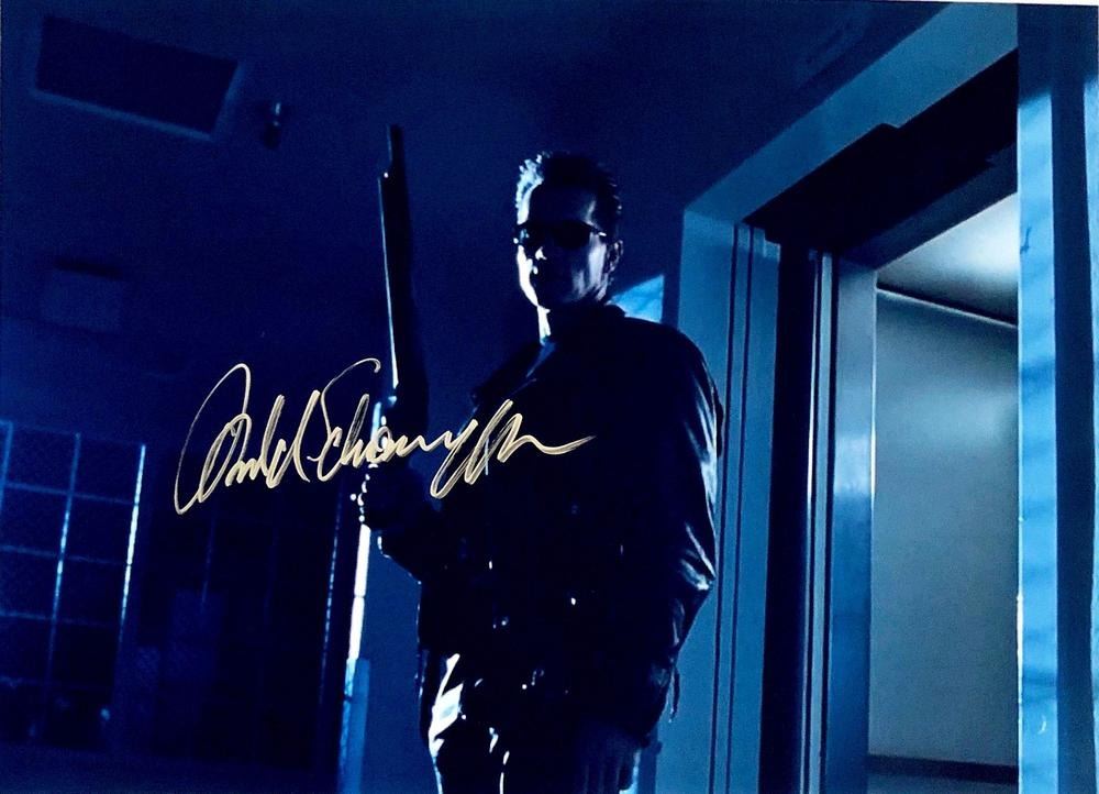 Terminator Arnold Schwarzenegger facsimile signed movie photo. 8x10 inches. This item is a reprint of an original autograph