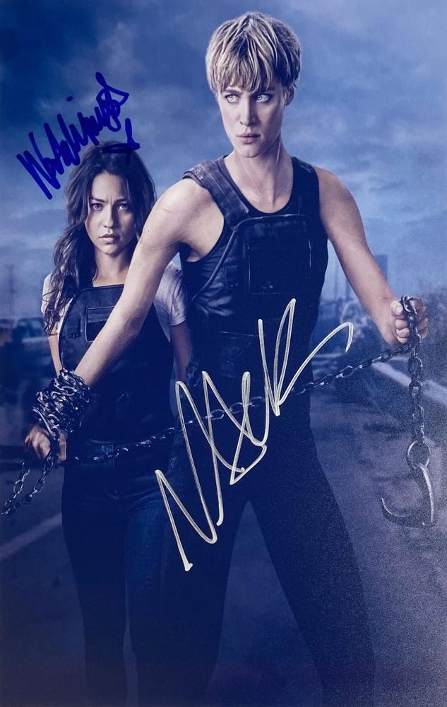 Terminator: Dark Fate facsimile signed movie photo autographed by Natalia Reyes and Mackenzie Davis. 8x10 inches. This item is a reprint of an original autograph