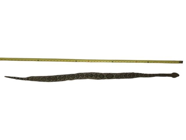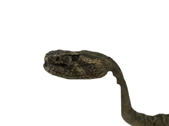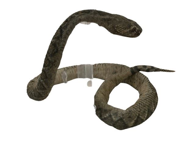 This Western Diamondback Rattlesnake, a star of Hollywood blockbusters like the Terminator franchise, is a remarkably lifelike replica. Measuring 60 inches long and 2.5 inches wide, and 7" diameter, its realistic, life size body is crafted from foam, painted latex and rubber. The glass eyes add an extra layer of authenticity, making it a must-have for collectors of cinema props or animal replicas. Despite its extensive on-set history, this rattlesnake remains in excellent condition. Constructed by AnimatedFX, Inc., a renowned Los Angeles-based company specializing in animatronics and special effects. Note: Item will require additional packing due to its fragile nature.