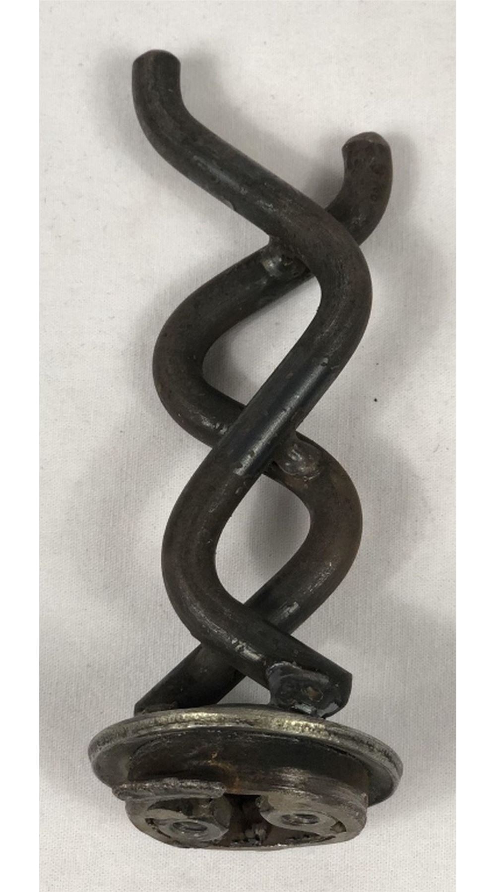 Helix Hood Ornament used in the production of 'Terminator Salvation' (2009), the military science fiction action movie where, in 2018, a mysterious new weapon in the war against the machines, half-human and half-machine, comes to John Connor on the eve of a resistance attack on Skynet. But whose side is he on, and can he be trusted?