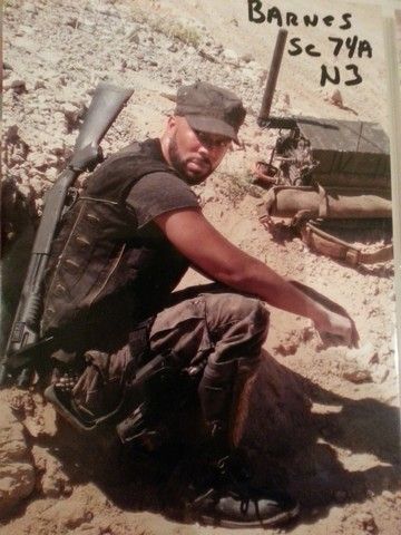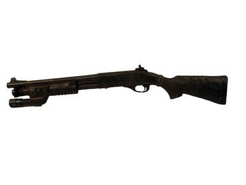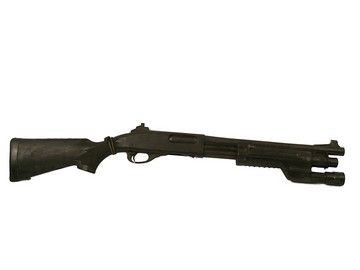 The gun of choice for Resistance fighter Barnes (Common), in 2009's "Terminator: Salvation", is his Remington Surefire 870 12 Gauge Entry Shotgun with a tri-rail on the fore end and flashlight mounted. This is that screen used Remington 870. It is made of hard industrial-rubber and is beautifully detailed, including the tri-rail and flashlight (non working). It is engraved with S/N AB358294M and also is engraved with the "Surefire" logo and "Remington 870 Police Magnum" on the left side. The right side has additional Remington engravings. The top and bottom of the stock shows signs of some slight damage, perhaps from the scene where Barnes knocks out Marcus (Sam Worthington), when he discovers Marcus could be an enemy cyborg. (Rubber shotgun is approx. 33" long).