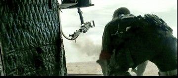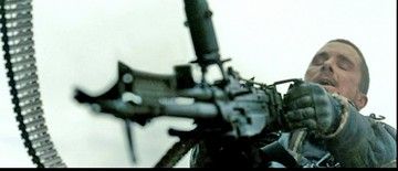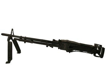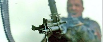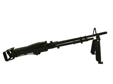 A grand mega-prop! From "Terminator: Salvation" (2009), this is John Connor's (Christian Bale), hero screen used massive M60D Huey Mounted Helicopter belt-fed hanging “cannon”, used in the key sequence where Connor makes his way onto a downed helicopter and uses this gigantic weapon to destroy a T-600 that he has been battling with, and is about to kill him, by firing at it point blank, blasting it right in half! This is an exquisite detailed weapon made in rubber with all attachments, including front barrel field guides and trigger and hand holders many of which are crafted to move. It has SS #7269239. The M60D is approx. 47" long.