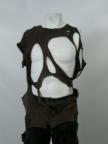 Marcus' hero screen worn "post-napalm" outfit from "Terminator Salvation" (2009). When Marcus (Sam Wainwright) escapes from the Resistance, he is finally flushed out when they instigate an "Apocalypse Now" style napalm bombing in the forest where he is hiding. Since he is more metal than flesh, he survives. This is Marcus' screen worn burned, ripped and blasted outfit that he wears after surviving the fire attack. It includes the burned remains of his jacket, shirt, leather pants and boots. The Jacket has "Marcus" written in the label.