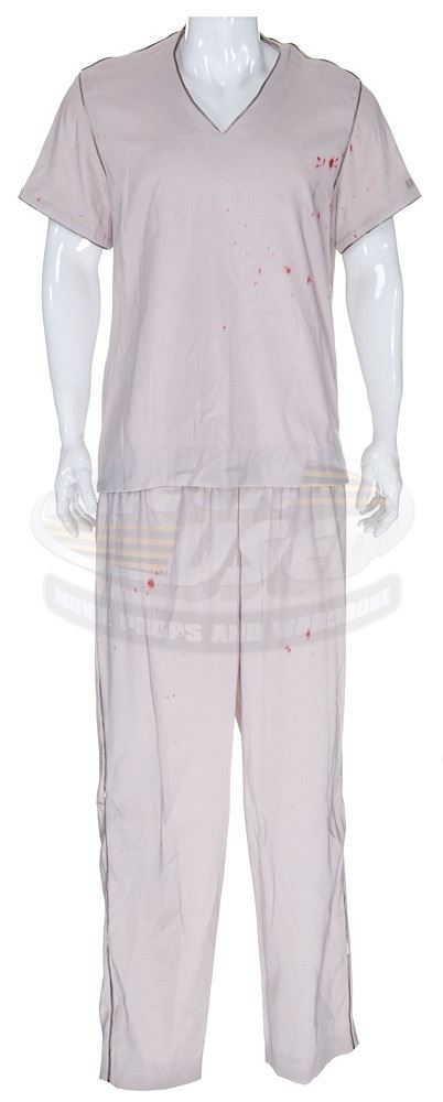 (Warner Bros. Pictures, 2009) This outfit was custom-made by the production for use by Sam Worthington as "Marcus Wright". This outfit consists of a matching shirt and pants with half zippers at the edges. The outfit is distressed with studio blood staining for filming and has minor wear from use.