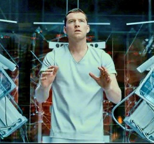 Screen worn Marcus Wright (Sam Worthington) costume from the film Termination Salvation (2009), the fourth installment in the series. Silver scrubs with blood spots, barcode on tunic sleeve, and zipper piping lining the tunic's seams, neckline and sleeves. These scrubs are worn onscreen when Marcus awakes in the Terminator "hospital" in the last part of the film and when he throws the chair through the window in the trailer.