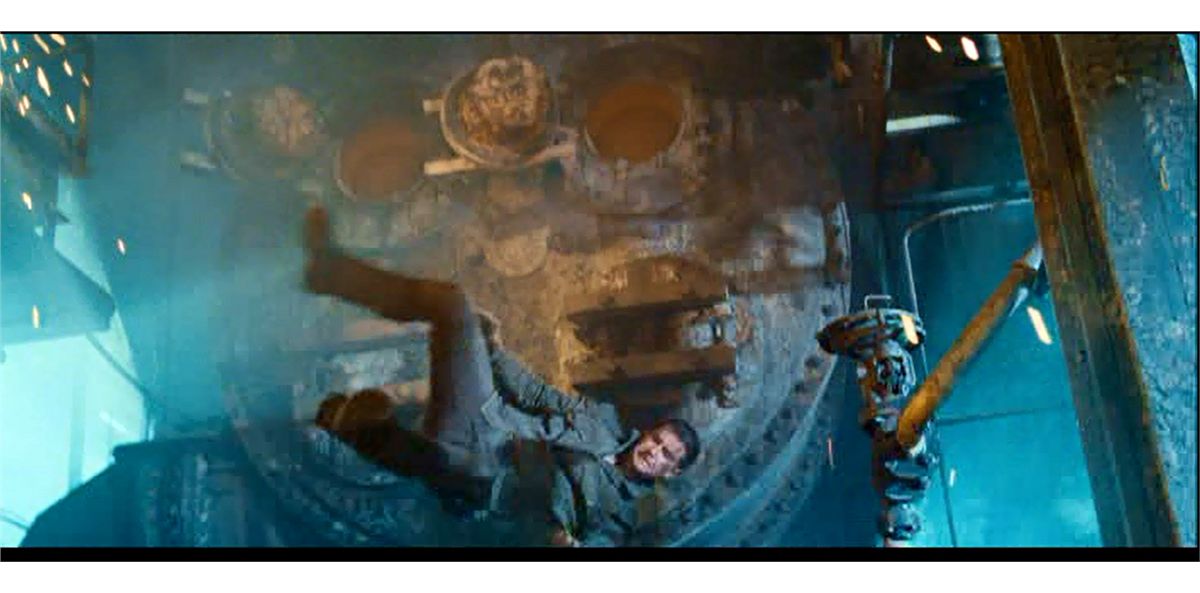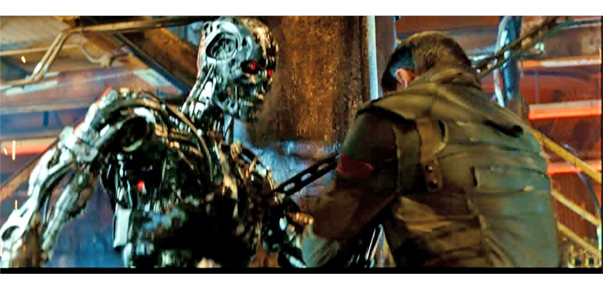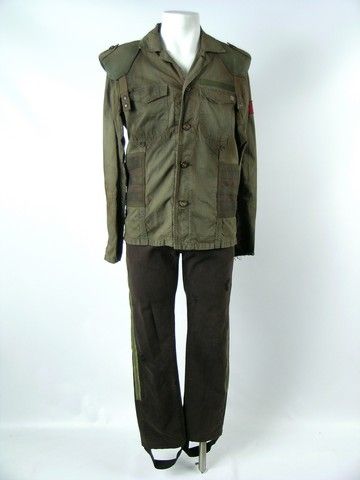 One of the most spellbinding battles between man and machine is at the end of "Terminator: Salvation" (2009) when Marcus (Sam Worthington) redeems himself with his eye-popping battle with the main T-800 (who we actually at first as Arnold Schwarzenegger) in an effort to save Resistance leader John Connor (Christian Bale). This is Marcus' hero screen worn outfit from that now classic sequence. It includes an aged military flight jacket with red "Resistance" shoulder patch, and black Levi "Capital E" cotton/polyester pants with military side leg stripping. The pants have leather-flapped back pockets, and are aged and stressed, from the beating he takes. (Pants are size 32).