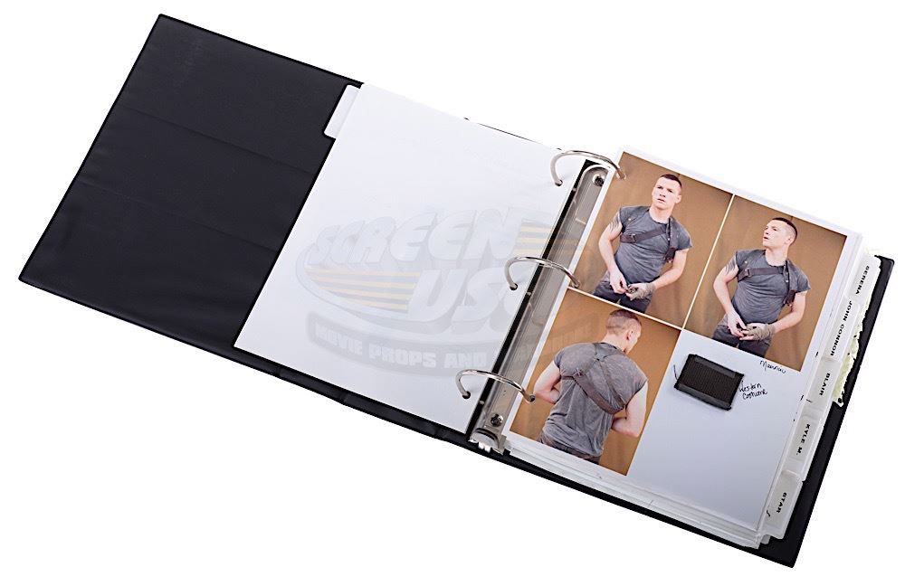 (Warner Bros., 2009) This one-of-a-kind costume department binder contains 36 pages that contain handwritten costume notes, retail purchase tags, costume details, actor images and costume swatches. The binder is a wealth of knowledge and interesting details, both in photographs and print of the costumes worn in the film. In addition to the 36 pages of costume information, the binder contains over 45 blank unused pages.