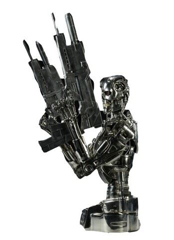 Terminator T-800 Scale Collectible Bust (released in 2009) - Endoskeleton Bust by Hollywood Collector's Gallery, numbered 170/1000. This bust captures the metallic, inhuman visage of the Terminator cyborg dual wielding Plasma Rifles. Crafted of polystone and real metal elements, the T-800 Endoskeleton Bust stands approx. 20" high. LED features add the piercing which can be used alone or in conjunction with the additional flashing blue lights of the endoskeleton's machinery. This limited and rare bust is a must have to any collection!! Approximate size: 20" x10. Box Size: 27"x19"x11". Weighs approx. 15lbs. Originally sold for $2,000 retail. Due to the size of this collectible it will be taken to a third party shipping company to professionally pack and ship for the most efficient price. Comes with original box which is in used condition, however the actual bust pieces have never been removed from the original packaging. Item was removed from the box for photos only.