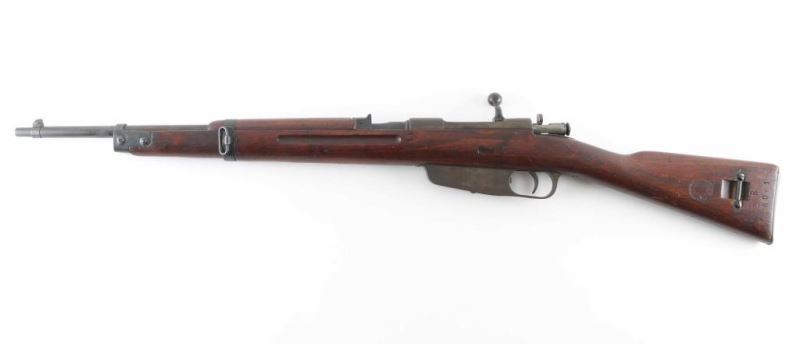 SN: AG3795 Rifle. Bolt-Action. WW2 era Italian Military issue. 1939 dated barrel. "Carcano" . 20.9" barrel, with front blade, rear notch fixed sights. Fed from a 6-rd integral magazine with en-bloc clip. Receiver stamped with "SA" in box, indicating use by Finland. Action is crisp/tight. Bore is dark/pitted. Blued finish is about 20%, with the rest turned a dull gray. There is spots of surface rust. Stock is slotted for detachable folding bayonet. Wood is good with the usual scratches/dings. 1939 Terni cartouche on left stock. NRA Condition-Fair. C&R firearm.