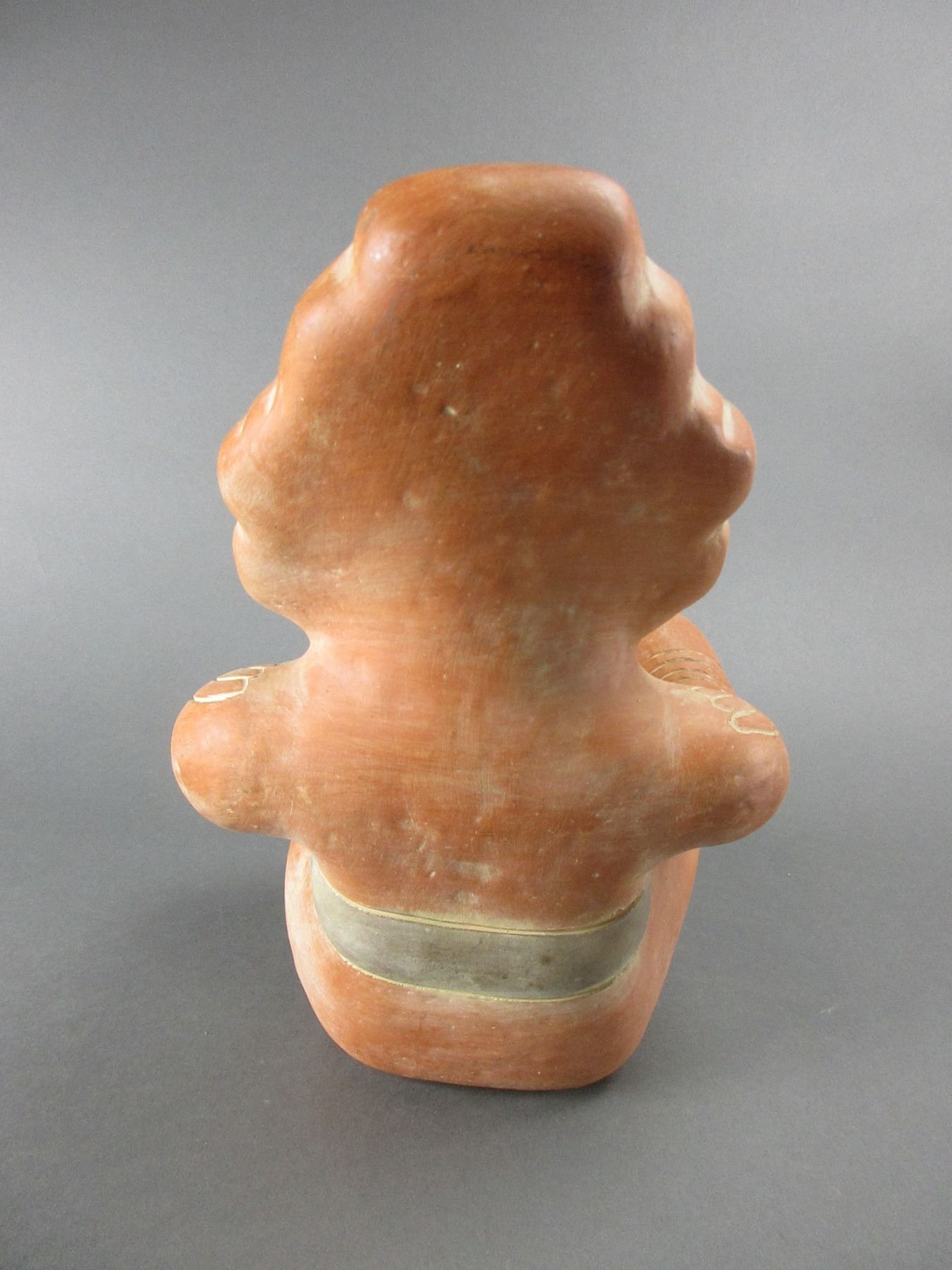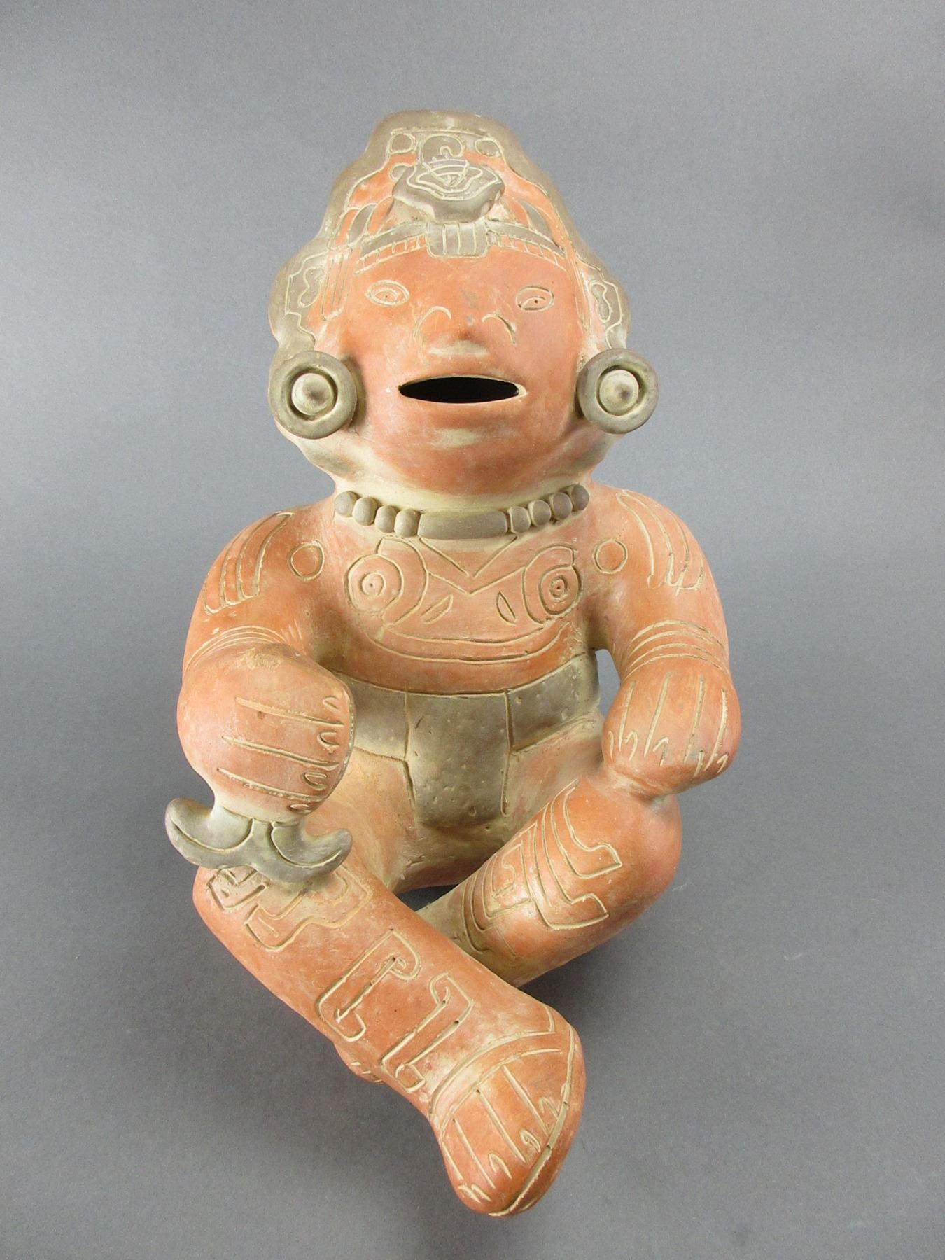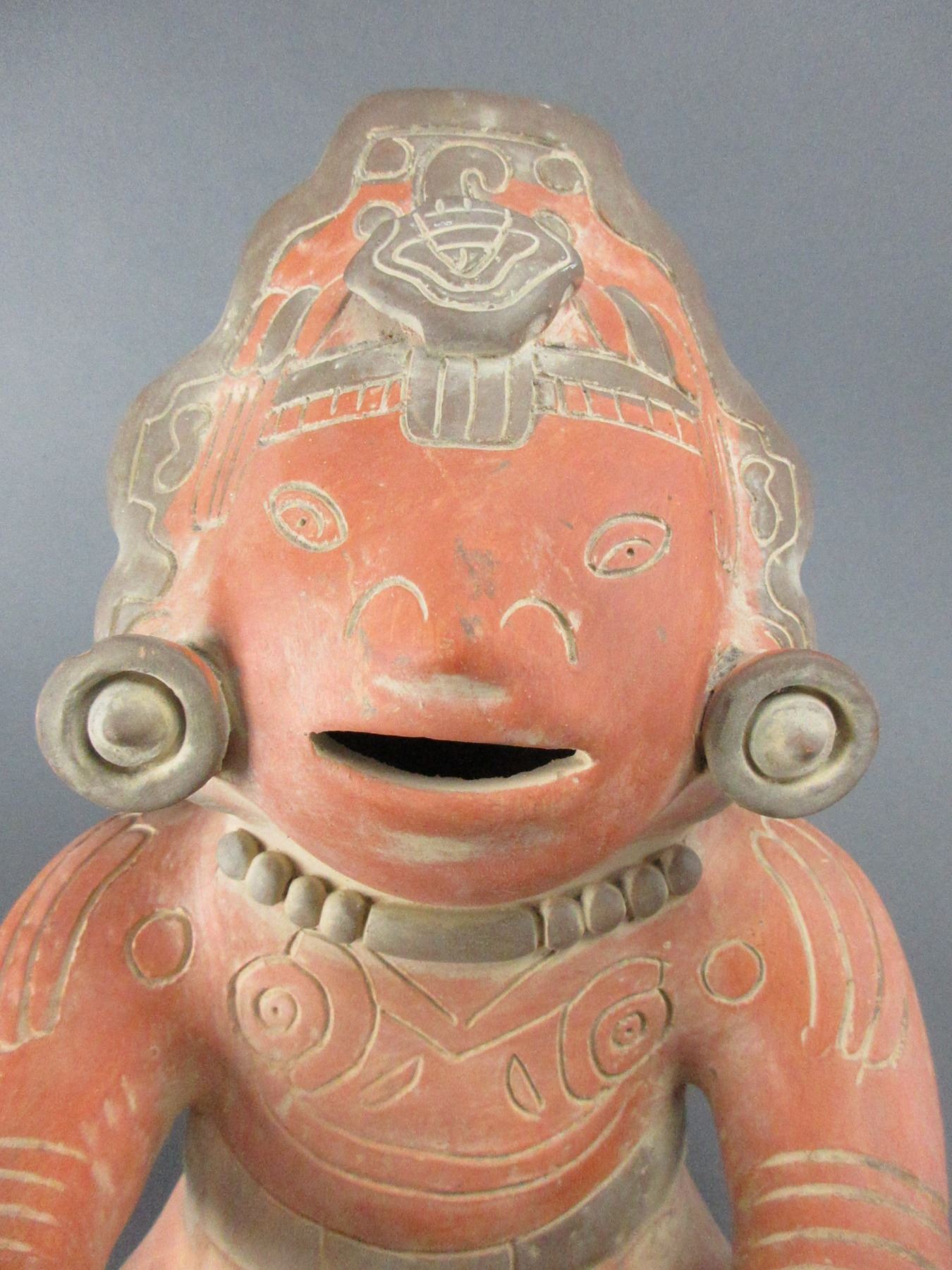 Terra Cotta Seated Mayan Pottery Figure- 14"H X 9"W- Looks Like A Piece Has Broken Off And Been Repaired