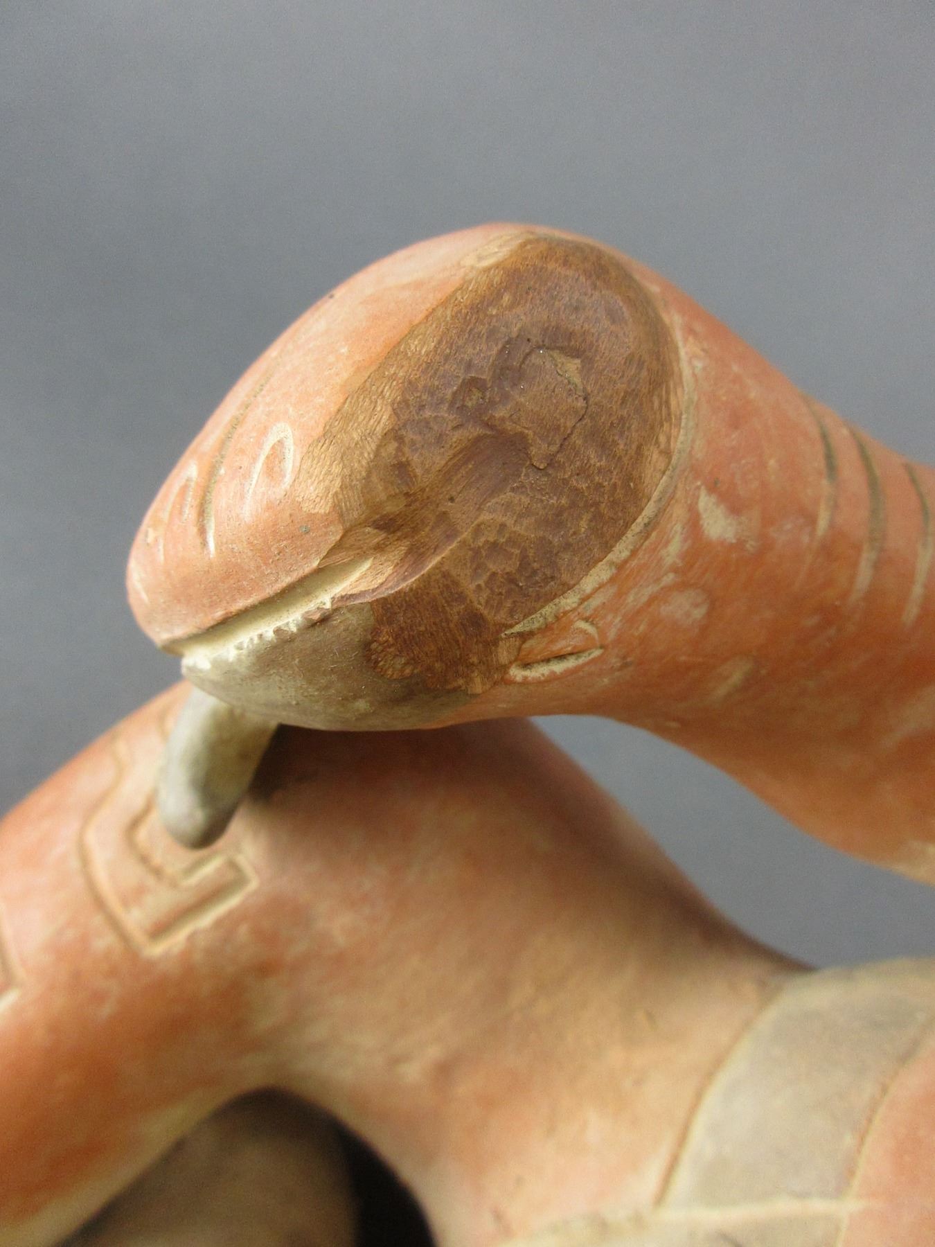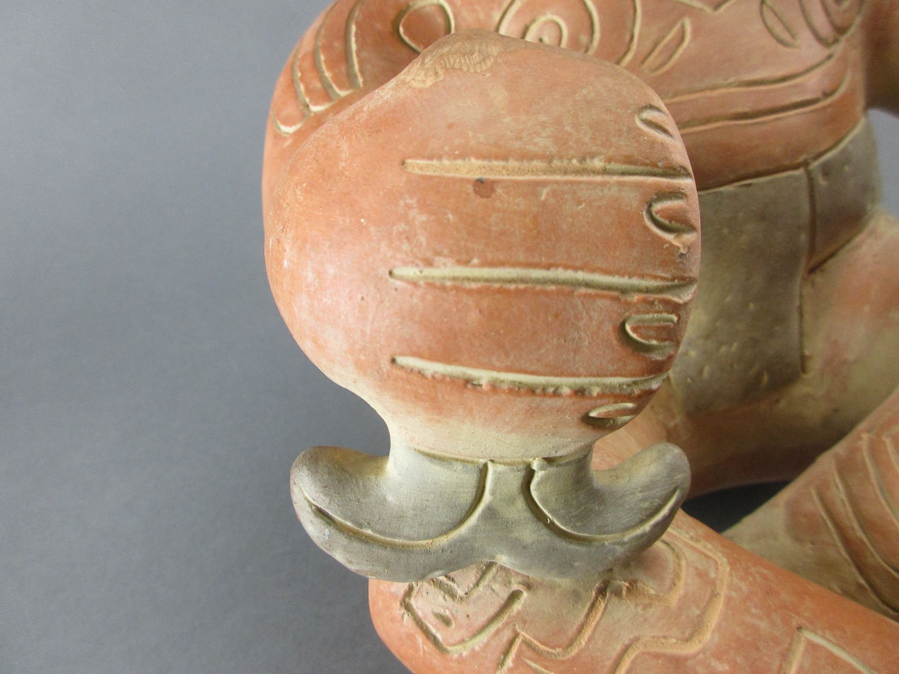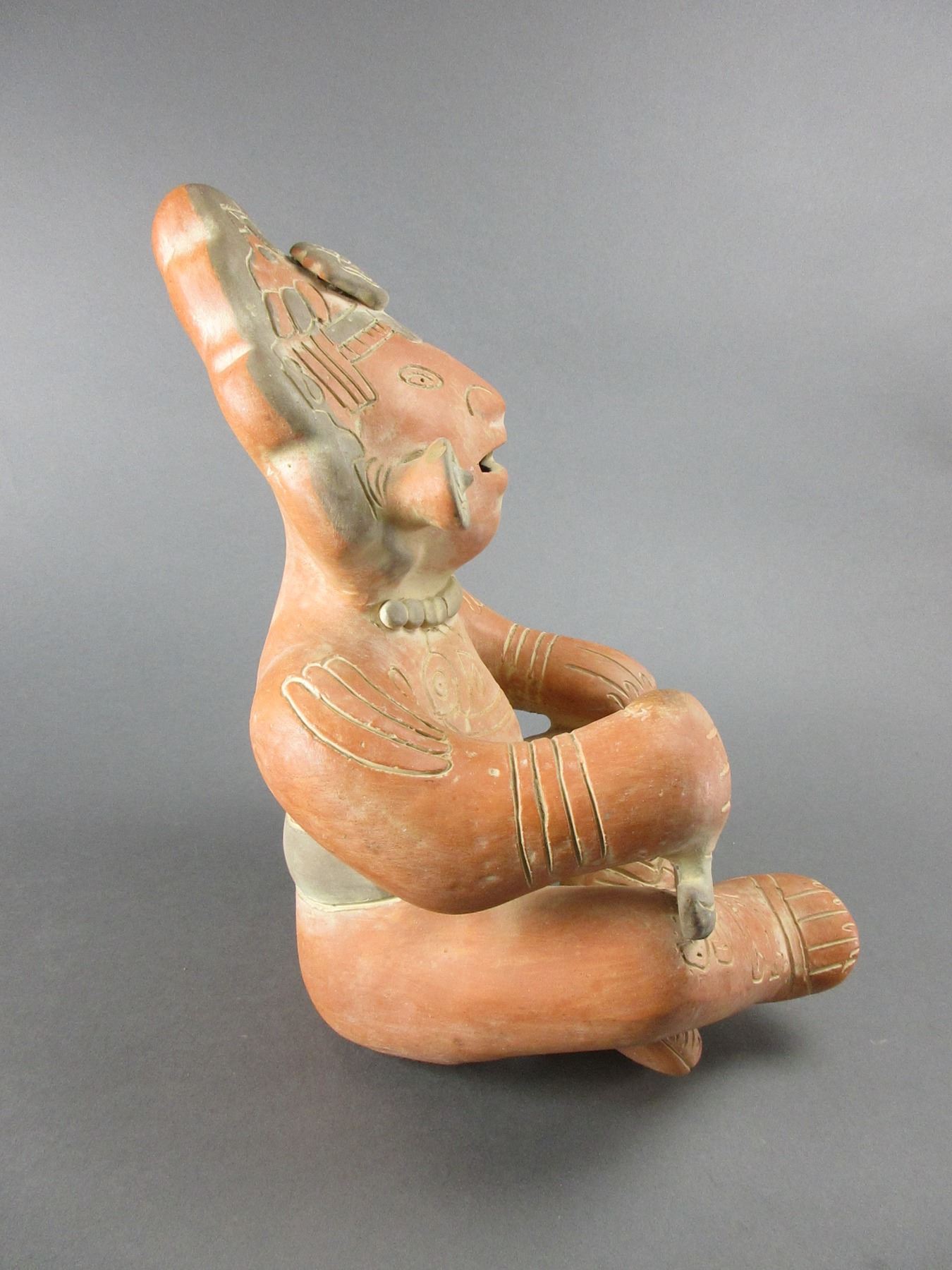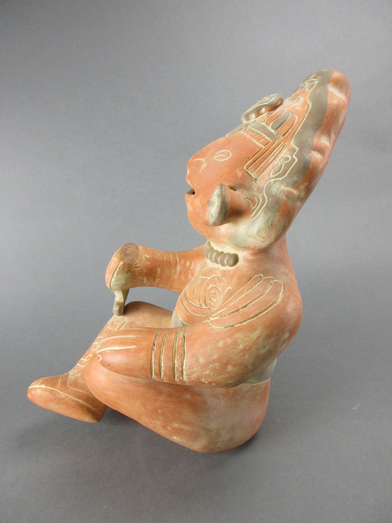 Terra Cotta Seated Mayan Pottery Figure- 14"H X 9"W- Looks Like A Piece Has Broken Off And Been Repaired